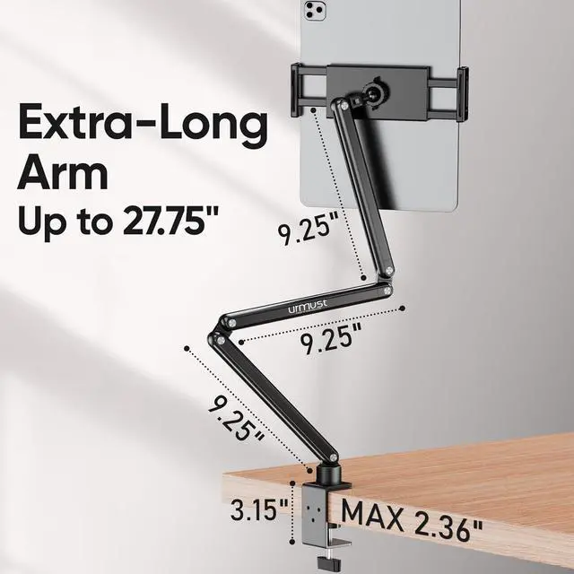 Stable & Reliable: Made from aircraft-grade aluminum alloy this ipad desk mount is incredibly stable. The scientific base design ensures stability even with heavy devices supporting up to 2.42 lb ( 1.1 kg). Use your devices without worry extending their lifespan and preventing accidental damage. Easy Installation & Tidy