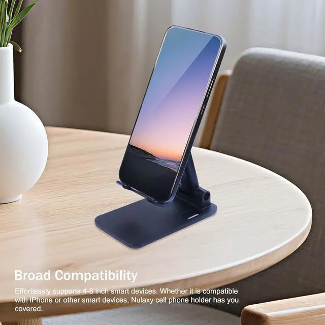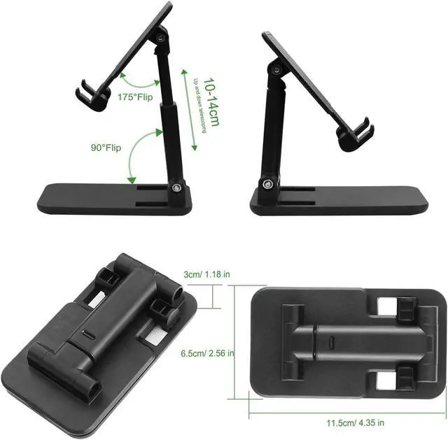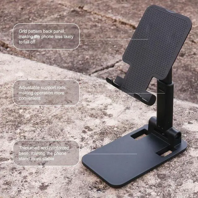3 Pcs Phone Stand For DeskOur team cares about your life quality so we provide 3 pack set to meet your diverse needs. You could place the cell phone stand for desk anywhere. You don't have to feel sorry for losing one and you could also share it with your family and friends. Foldable And Angle Height AdjustableThe cell phone stand can be adjusted from 4.3 inches to 5.9 inches while the angle of the upper bracket is 0-120° adjustable and the support stick can be adjusted from 0-90°. The mobile phone stand can be lifted and folded as you like.