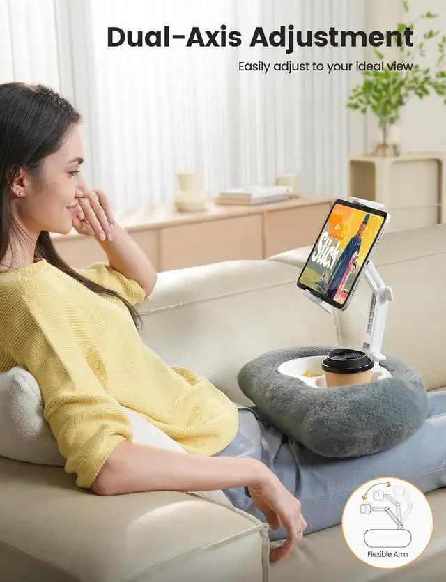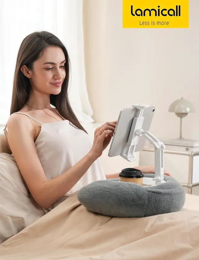 Flexible Viewing Angles Lamicall kindle pillow stand features a fully adjustable arm and 360° rotating tablet clamp so you can easily find the perfect angle. Enjoy hands-free comfort whether you're on the sofa in bed or relaxing anywhere in your living room. Ultra-Soft & Ergonomic This kindle stand for reading in bed features plush skin-friendly fabric for instant comfort. Its U-shaped design helps relieve pressure allowing you to fully relax while watching movies or reading. A must-have among cozy iPad accessories. Easy to Clean The kindle holder for bed is designed for easy care.