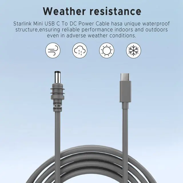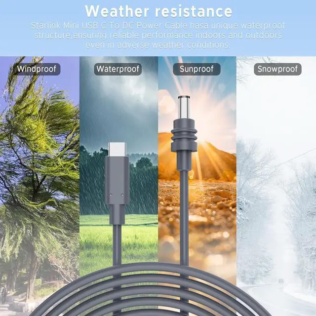 Starlink Mini USB-C to DC Power Cable, Max 100W Input USB Type C to DC Cable, Waterproof, Starlink Mini USB Cable Compatible with 65W+ PD Source 3M/10Ft