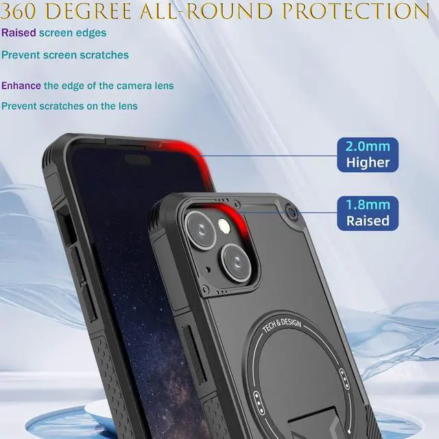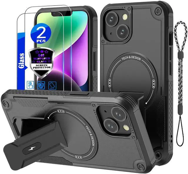 ![Alt view image 7 of 7 - for iPhone 13 case/iPhone 14 case[Compatible with MagSafe][with 2*9H Tempered Glass Screen Protector], Built in Invisible Stand, Not fadingShockproof Protective Phone Cover 6.1-inch(Black)](https://c1.neweggimages.com/productimage/nb640/C6GBD2604260GYKJM74.jpg)