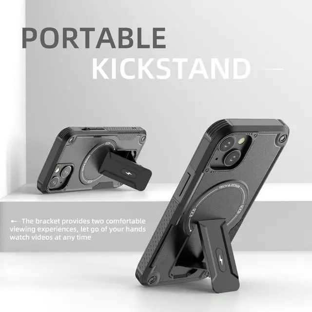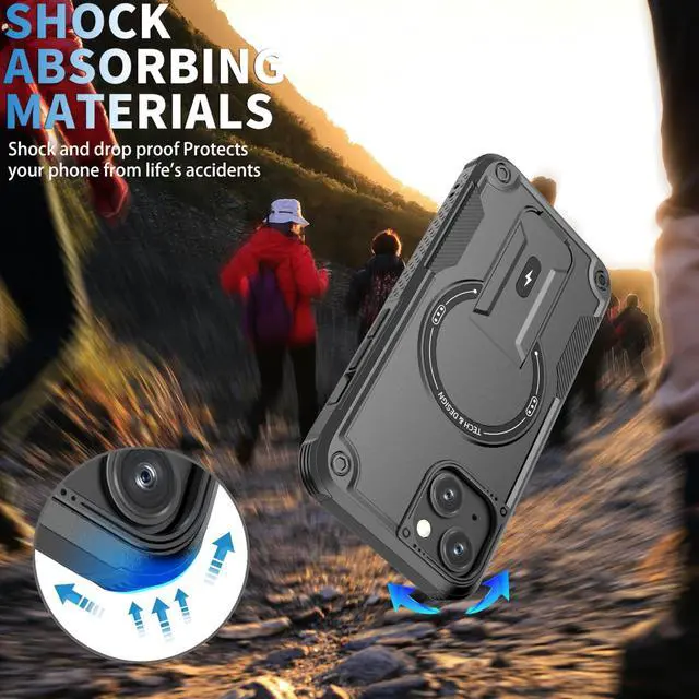 ![Alt view image 5 of 7 - for iPhone 13 case/iPhone 14 case[Compatible with MagSafe][with 2*9H Tempered Glass Screen Protector], Built in Invisible Stand, Not fadingShockproof Protective Phone Cover 6.1-inch(Black)](https://c1.neweggimages.com/productimage/nb640/C6GBD2604260GYKEV1A.jpg)