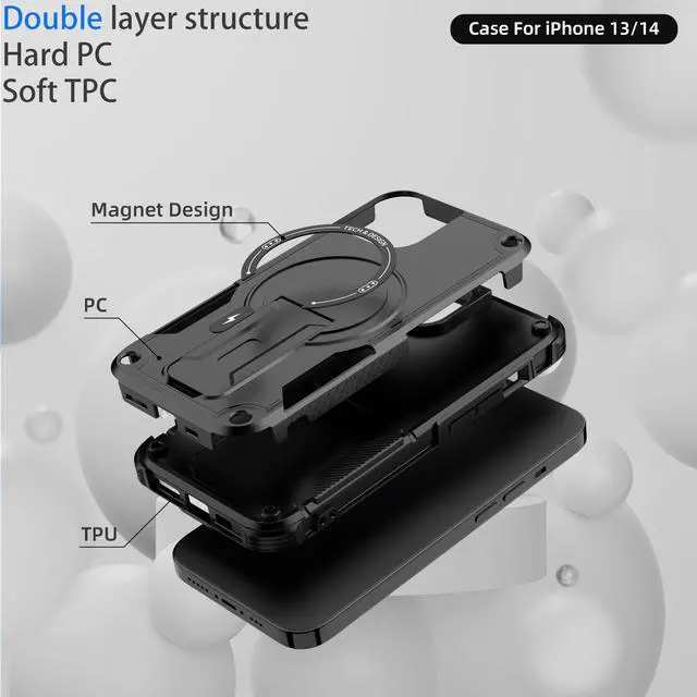 ![Alt view image 4 of 7 - for iPhone 13 case/iPhone 14 case[Compatible with MagSafe][with 2*9H Tempered Glass Screen Protector], Built in Invisible Stand, Not fadingShockproof Protective Phone Cover 6.1-inch(Black)](https://c1.neweggimages.com/productimage/nb640/C6GBD2604260GYKAM69.jpg)