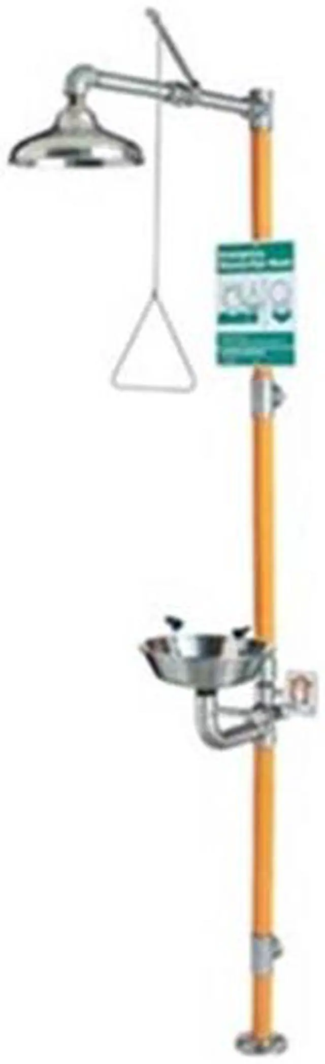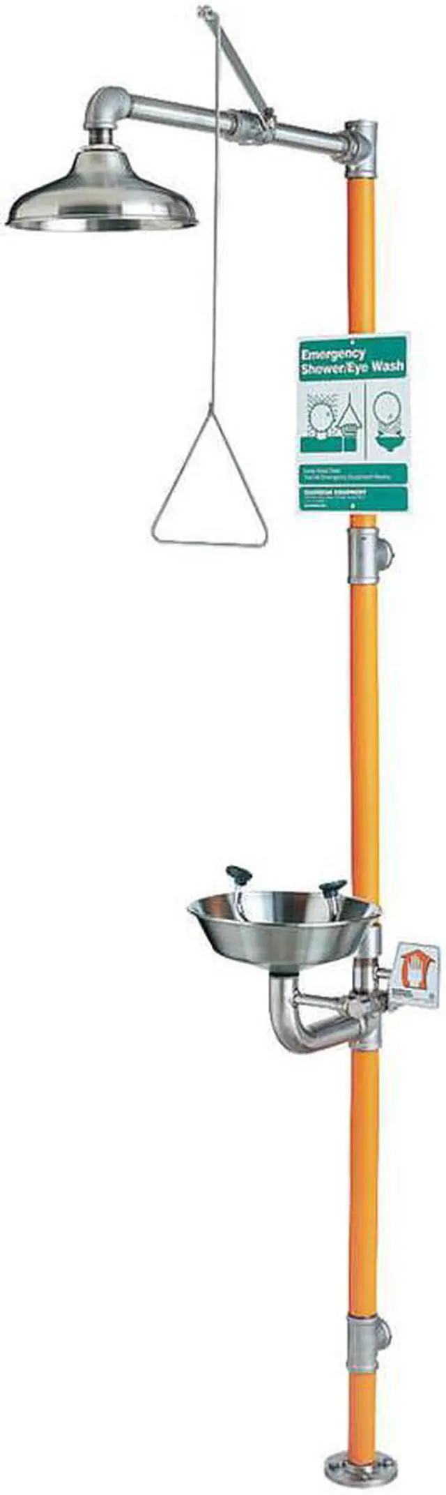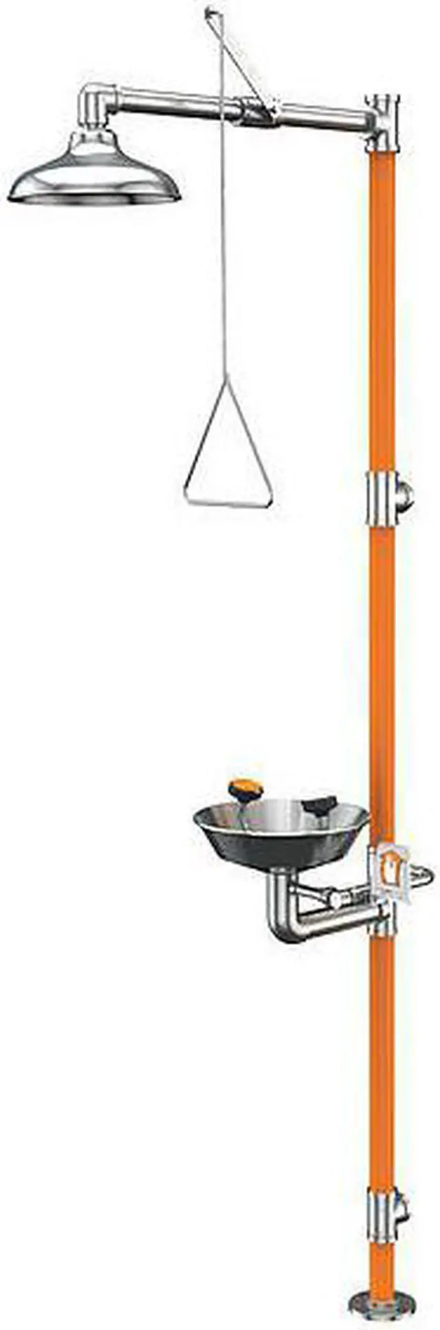 Shower with Eyewash, Barrier Free No, Bowl Style Uncovered, Coverage Eyes and Face, Eyewash Bowl Material Stainless Steel, Hazardous Location Rating Not Rated, Includes Emergency Shower/Eyewash Sign, Inspection Tag, Includes Foot Pedal No, Includes Showerhead Shroud Yes, Inlet Connection Location Middle/Top, Inlet Pipe Gender Female, Inlet Pipe Size 1 1/4 in, Inlet Pipe Thread Type NPT, Pipe Material Stainless Steel, Shower Spray Head Material Plastic, Sub-Brand Guardian Equipment. This item has been restricted from sale in the following state (s): []