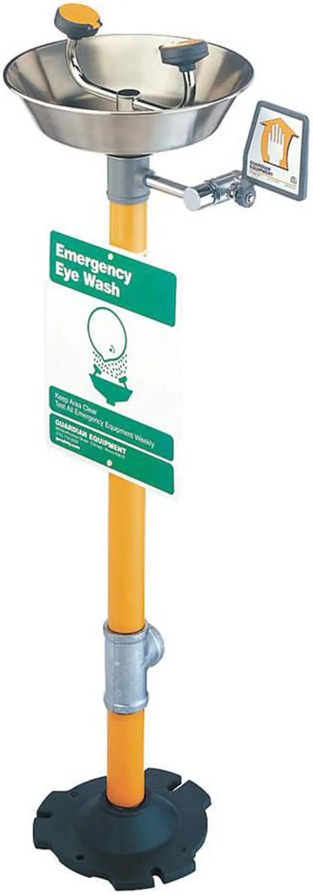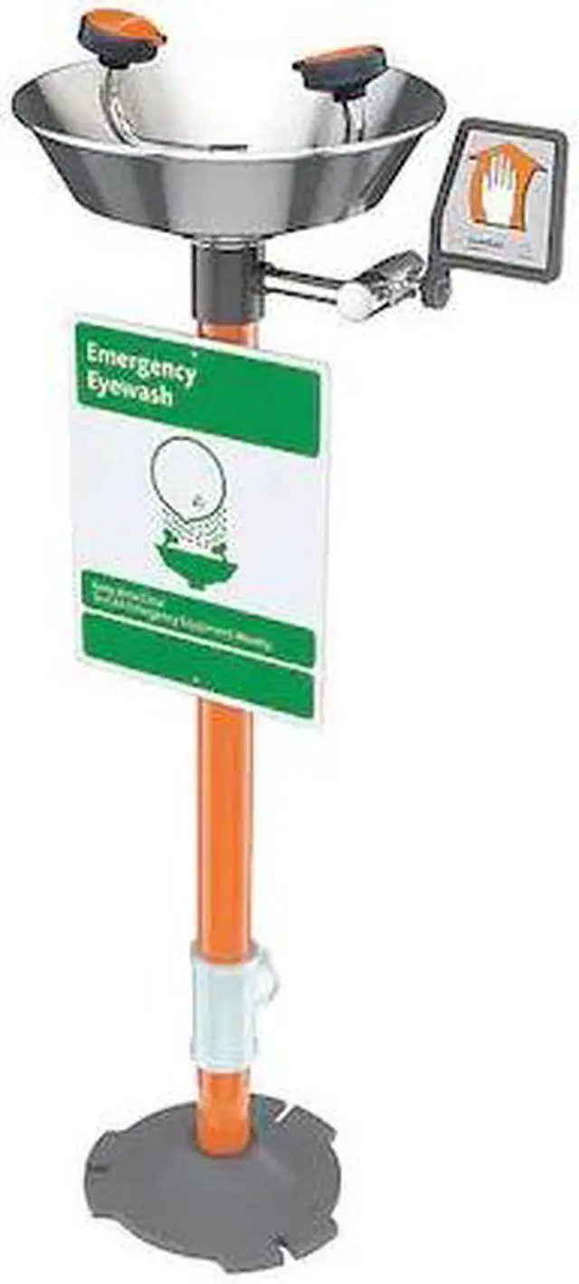 Plumbed Eyewash, Activation Push Plate, Barrier Free No, Bowl Style Uncovered, Color Silver, Coverage Eyes and Face, Depth 11 1/2 in, Height 38 in, Width 16 in, Environment General Purpose, Eyewash Bowl Material Stainless Steel, Hazardous Location Rating Not Rated, Includes Hi-Visibility Identification Sign, Inspection Tag, Nylon Flip-Top Dust Cover, Includes Drench Hose No, Includes Foot Pedal No, Inlet Pipe Gender Female, Inlet Pipe Size 1/2 in, Inlet Pipe Thread Type NPT. This item has been restricted from sale in the following state (s): []
