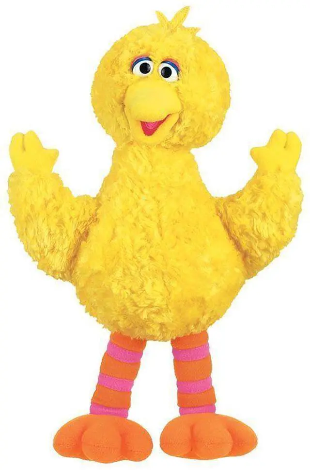 There's no mistaking this classic Sesame Street character: Big Bird's bright yellow fur, big-mouthed beak, and pink-striped orange legs are dead giveaways. An undisputed favorite among Sesame Street fans, young and old. Surface washable. 14" tall.