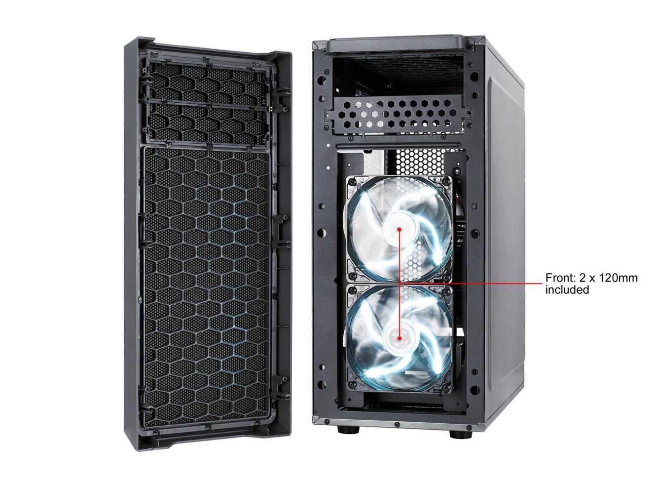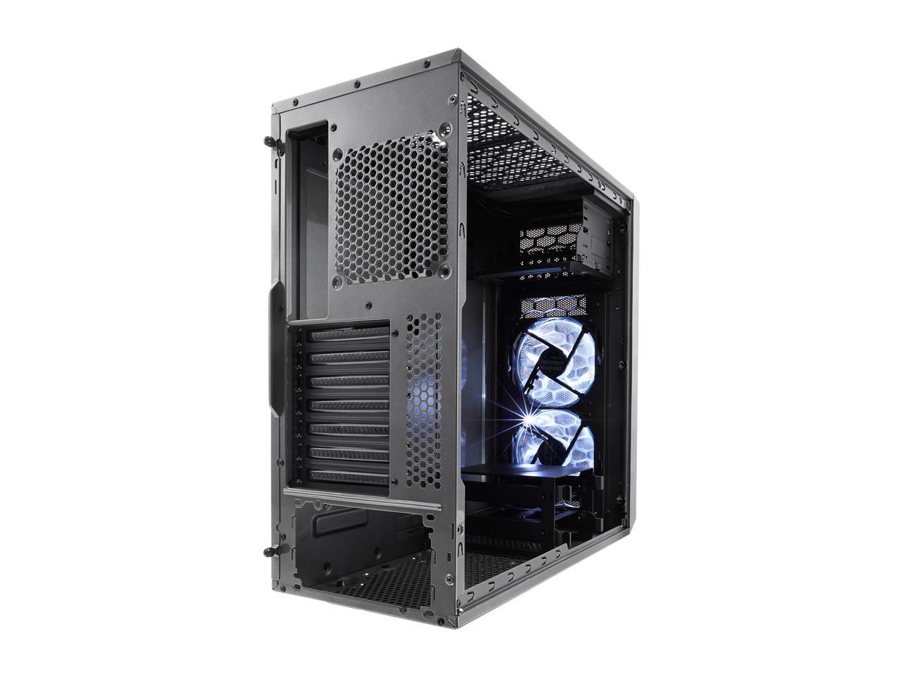Pros: This case has excellent ventilation and ventilation options. The two case fans (3-pin) on the front are adequate, and the mesh front allows them to work well. They don’t move as much air as some fans, but they get the job done. I don’t care for the clear fans, but with the white LEDs and the mesh front, the look acceptable. I would not change them unless one failed. Also, there is easy mounting for a large radiator up top and a rear fan (not included) This case is sturdy before and after all the components are installed. This case is large enough to work inside easily, but still small enough to be more of a classic mid-tower, rather than the current mid-towers that are usually over 17 inches tall. Captive thumbscrews are a nice touch, but have their own problems (see cons). Hard drive bay is completely tool-less and the holsters can be inverted, which may be necessary depending on your hard drives arrangement, since a 3.5-inch hard drive will be nearly flush against the side rail and could block cable connections otherwise. 3.5-inch hard drives can ONLY be installed with the connectors opposite the window-side of the case. Power supply mount is on the bottom and allows for inverted installation, if desired. Cable management is relatively easy; a couple of the cable runs were a tight squeeze, but should be manageable for everyone.