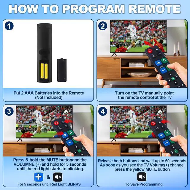No Programming NeededSimply insert the batteries and start using the remote with your Samsung TV - no setup or pairing required