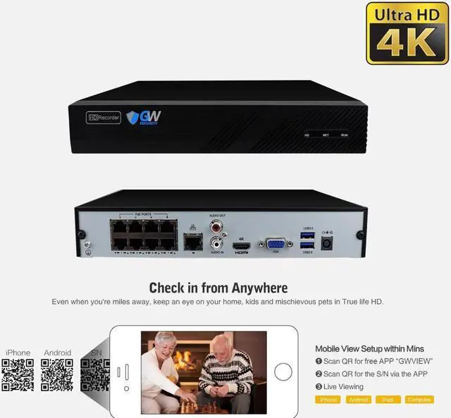• Easy Steps QR Code Setup - 1) Download & install app "GWView". 2) Go to NVR setting -> Network -> Scan the QR code with your app. 3) Your Cameras are Ready to View.