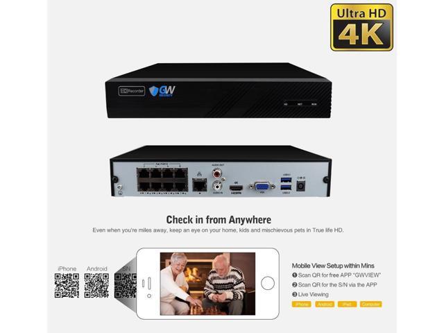 GW Security 8 Channel 4K NVR 5MP Smart AI Human Detection Security Camera System with (6) x IP PoE 5MP 1920P Outdoor/Indoor Microphone Dome Cameras 100 Feet Night vision, Free Remote Viewing