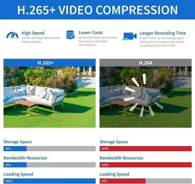 Our GW 4K security cameras featured in these IP systems use advanced 8-Megapixel UHD image sensors and have approximately four times the amount of pixels as a 1080p HD security camera. Each IP camera delivers 8.0 megapixel at 3840 x 2160 pixels with sharper and larger image and video than 5MP security cameras.