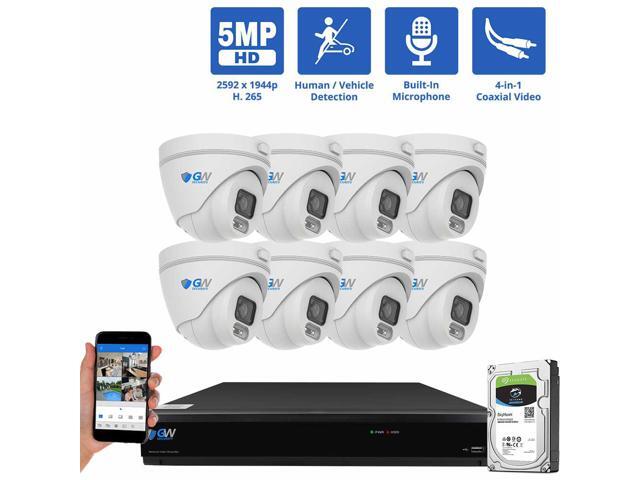 GW Security 8 Channel 4K DVR 5MP CCTV AI Surveillance System with 8 x 5MP HD 1920p AI Face/Human/Vehicle Detection Waterproof Microphone Turret Security Cameras, 2TB Hard Drive