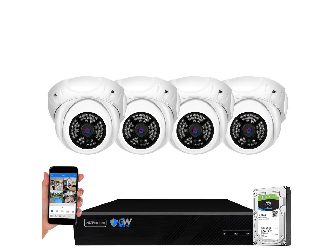 GW Security 8 Channel 5MP H.265 NVR IP Camera Network PoE Video & Audio Surveillance System (1TB HDD), 4 x HD 1920P Weatherproof Microphone Turret Security Cameras, AI Human Detection