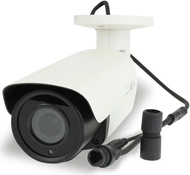 Designed for easy installation, waterproof and vandal proof housing fits in most indoor and outdoor installations. Camera Feature *Adopt the High performance 5.0 Megapixel Progressive Scan CMOS Sensor *Real time 2MP 30 frames, 3MP 30 frames, 5MP 15 frames *42pcs Infrared LED illumination for recording video at night up to 120Ft *Split glass design minimizes IR reflection *Support Onvif universal agreement and P2P network *Support iPhone/iPad/Android Smart Phone/PC Free Remote monitoring *Digital Noise Reduction & Wide Dynamic Range *Optional power port for non-PoE installations *Program Motion Detection & Email Alerts *IP66 Outdoor or Indoor Use *1 Year Warranty and Free Tech Support.