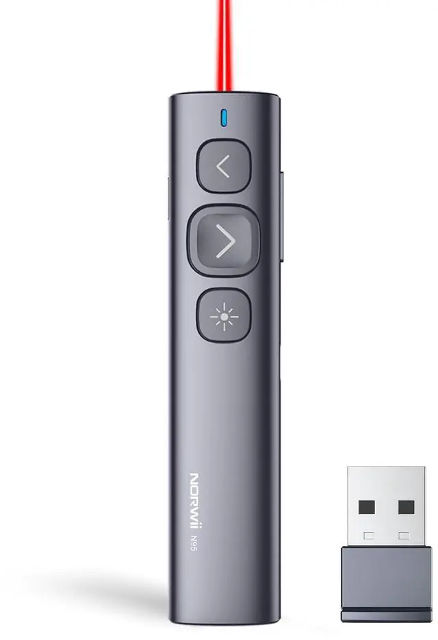 N95 Presentation Clicker, PowerPoint Clicker for Presentation Remote, Rechargeable Wireless Presenter Pointer, Slide Advancer for PC/Laptop/e-Book in Classroom, Auditorium, Church (Red, USB-A)