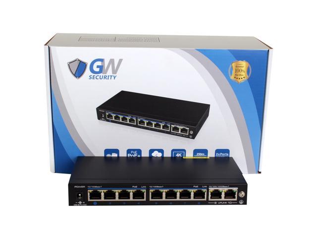 GWSW0802M 8+2 Port 10/100 PoE Switch w/ All 8 Port PoE (Power Over Ethernet) - Designed For Connect NVR System and POE IP Camera - POE Data & Power Transmission Distance 100 Meter (300 Feet)