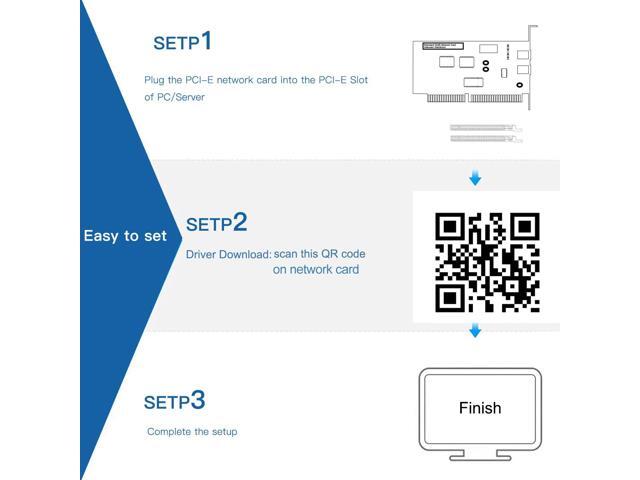 - Easy to install: Packed with Both Full-height Bracket and Low Profile Bracket that support on Standard and Slim computer/server; Scan the QR code on the network card to download the driver immediately