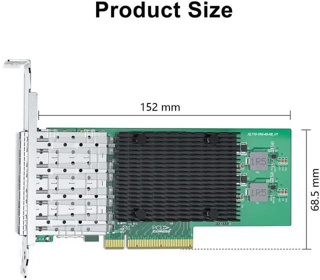 4 SFP+ Ports Ethernet Converged Network Adapter,(amount to 710-DA4 FH), it delivers superior performance with a theoretical throughput of 80 Gb/s (40Gb/s Tx; 40Gb/s Rx) bidirectional throughput in a PCI Express v3.0 x8 slot.