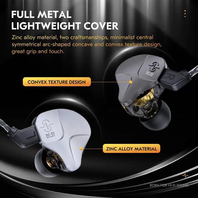 Music to your ears! CCZ DC03 iems earbuds' redesigned dynamic driver delivers outstanding Hi-Res audio and most powerful bass performance. With professional V-shape tuning, it also provides enhanced high-frequency response. The ccz earbud is ideal for metal and rock musics, as well as games.