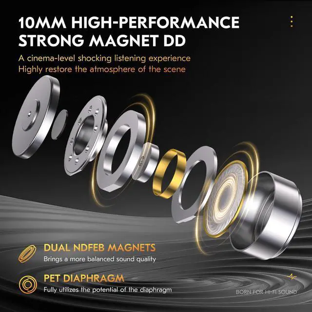 Merchant VideoPET composite diaphragm makes the low frequency more elastic, the resolution more accurate and details more rich. The vocal is mellow, moderate low-frequency, clear and full mid-high frequency. Bringing a cinema-level shocking listening experience, highly restore the atmosphere of the scene.