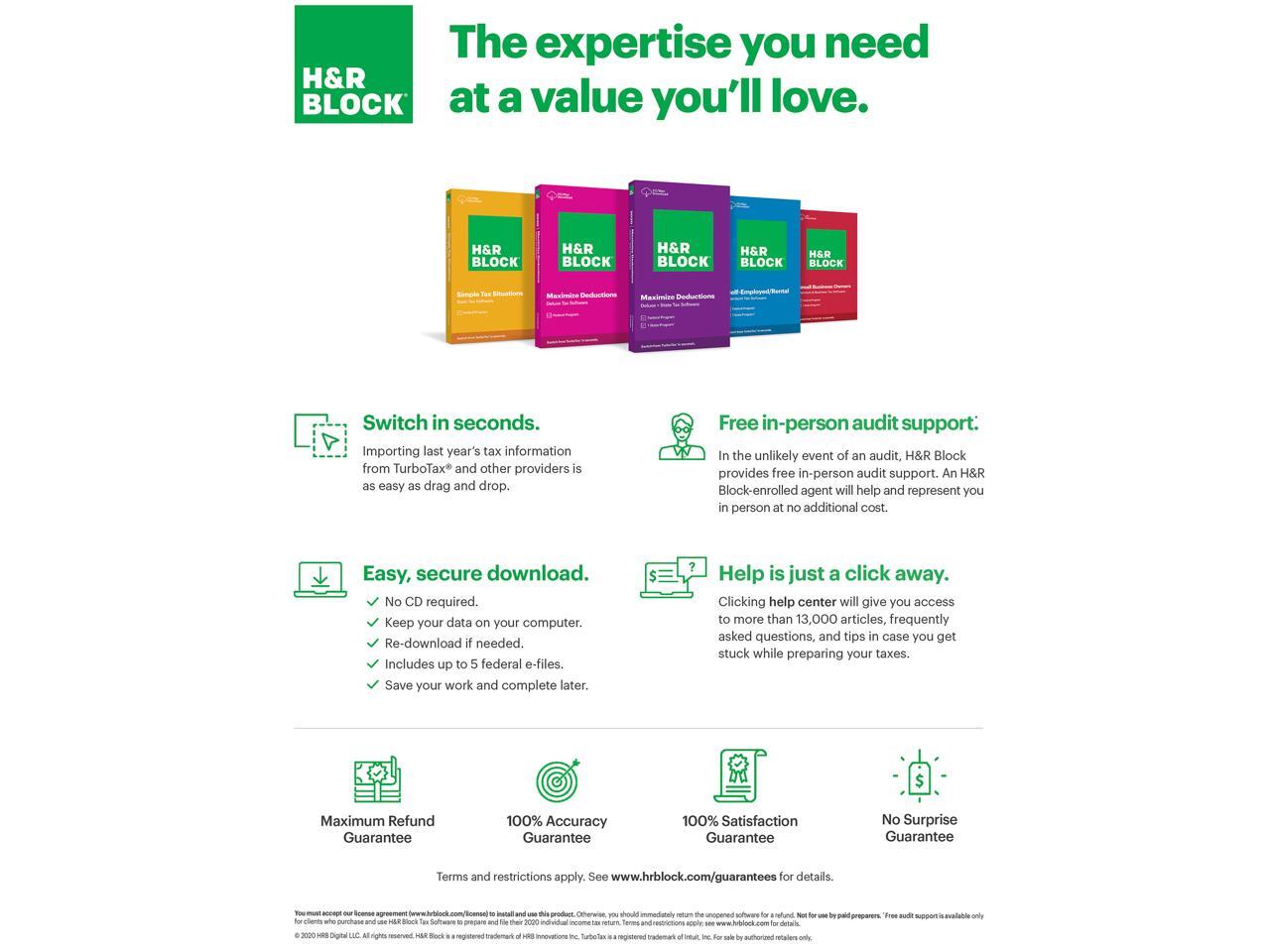 H&R Block Tax Software Deluxe + State 2020 PC Windows/Mac (Bundle Key Card)