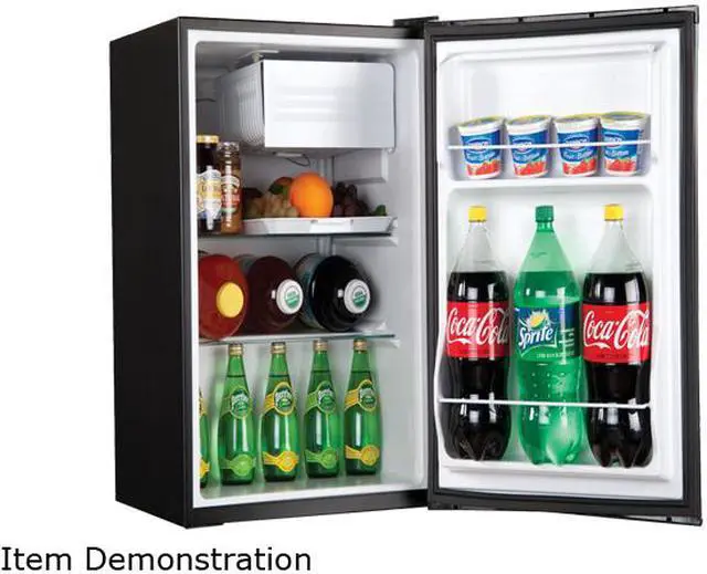 The Haier 2.7 Cubic Feet Refrigerator/Freezer features door space to hold 3 2 Liter Bottle Storage bottles. With two full-width glass shelves The refrigerator is easy to position with its adjustable leveling legs and has a flat-back design to help save space. Your refrigerator will automatically maintain the temperature level you select. The temperature control dial has 7 settings plus "0" - 1 is the warmest 7 is the coldest. Black.