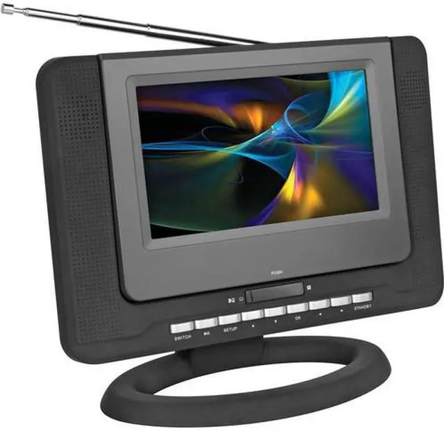 | Features | LCD TV with ATSC/NTSC Tuner High Resolution Display Auto Channel Programming Car / AC adapter Built-In TV Stand Multi-Language OSD and Subtitles |