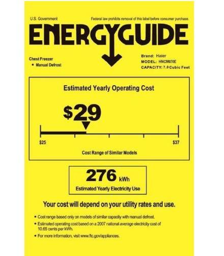7.0 Cu. Ft. FreezerThe 7.0 cu. ft. Haier HNCM070E freezer holds approximately 245 lbs. of frozen food, providing sufficient room for your ice, ice cream, and all frozen foods.