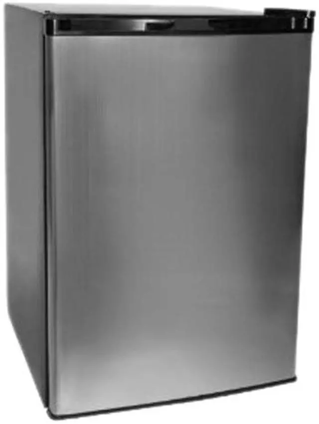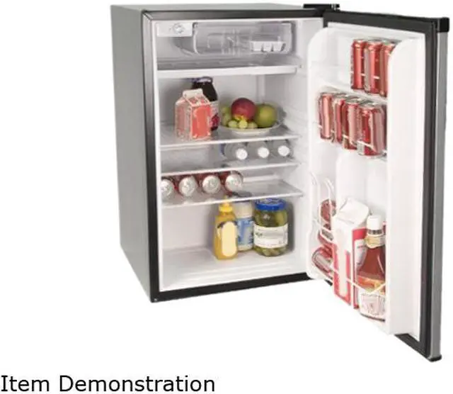 Haier HNSE045VS 4.5 Cu. Ft. Refrigerator Freezer - Virtual Steel. Add a modern aesthetic to your home while enjoying a refrigerator / freezer without sacrificing kitchen or living space. Invest in the Haier 4.5 Cu. Ft. Refrigerator / Freezer in Steel. This stylish, compact unit allows for ample and efficient storage with its half-width freezer compartment, three (3) full-width glass shelves, Dispense-A-Can storage bins, and two (2) full-width door shelves. This refrigerator / freezer also features a full-width convertible drip storage tray, adjustable leveling legs, manual defrost, and a reversible door in addition to being able to accommodate 2-liter and tall bottles. Equipped with a half-width freezer compartment, Dispense-A-Can storage, and three (3) full-width glass shelves, you'll have the storage you need. With its flat-back, reversible door, and adjustable leveling legs, this unit fits great in small spaces.