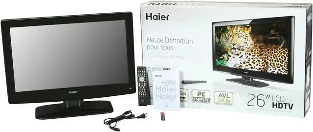 This 26" LCD HDTV with SRS TruSurround HD from Haier delivers a virtual surround sound experience, plus a sharp, clear picture. Multiple AV inputs make connecting other high definition devices quick and simple.