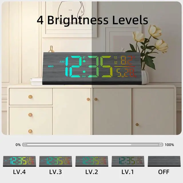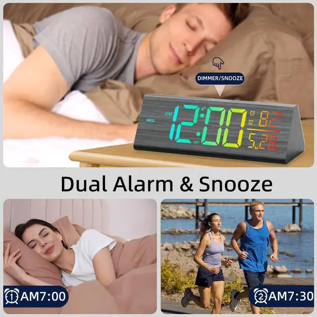 Haimiage Solid Wood Digital Alarm Clock: See Your World Clearly, Instantly. Tired of fumbling for your phone or straining to see a tiny clock display? Meet the Haimiage Solid Wood Digital Alarm Clock designed for instant clarity and natural style. Experience timekeeping that's both beautiful and brilliantly functional. See Everything You Need, Instantly & Clearly Our core promise is "See Everything Instantly." That's why we engineered the display with oversized, centrally positioned hours and minutes the most critical information is always boldest and easiest to see. No more searching! Surrounding this central time, you simultaneously see: The current date (Month/Day) The day of the week The room temperature Get your complete time and environmental snapshot in one effortless glance. Warmth of Nature: Premium Solid Wood Construction Ditch the cheap plastic! Crafted from genuine, high-quality solid wood, this clock brings a touch of warm, natural elegance to any room. It's an eco-conscious choice that feels as good as it looks, setting it apart from ordinary alarm clocks. Personalize Your View: Colors & Layouts Galore Make it truly yours! Choose from 10 distinct display modes to prioritize the information most important to you. Then, select from a range of vibrant backlight colors to set the perfect ambiance cool blue for calm, warm orange for cozy, bright white for clarity, and more. Adapt the display to your mood or time of day. Wake Up Confidently: Smart Dual Alarms & Super Loud Ringer Two Independent Alarms: Perfect for partners or different weekday/weekend schedules. Each alarm can be set to ring only on weekdays (Mon-Fri), only on weekends (Sat-Sun), or every day. 110dB Maximum Volume (5 Levels): Engineered for even the deepest sleepers. Adjust the volume (L0-L5) to find the perfect level, from a gentle chime to a powerful wake-up call. 9-Minute Snooze: Tap the top button for those precious extra minutes. Designed for Effortless Convenience Auto Daylight Saving Time (DST): Simply press the dedicated Auto DST button to toggle DST on or off no confusing menu diving! Temperature Unit Switch: Easily toggle between °Celsius (default) and °Fahrenheit. 4-Level Adjustable Brightness (L0-L4): From a soft nighttime glow (L0) to full daytime clarity (L4). Find the perfect level for any environment. Memory Backup: Uses 2 x AAA batteries (not included) solely to remember all your settings (time, alarms, modes, etc.) and keep time running during brief power outages. Note: The clock requires connection to the included power adapter (5V/2A) for primary operation and display. USB-A Charging Port (5V/1A): Conveniently located on the side to charge your phone or other small devices overnight using your own cable. Ideal for bedside use. What's in the Box: 1 x Haimiage Solid Wood Digital Alarm Clock 1 x 5V/2A Power Adapter (US Plug) 1 x Power Cable (USB-A to DC Barrel) User Manual Upgrade your timekeeping experience with the Haimiage Solid Wood Digital Alarm Clock. Enjoy instant clarity, natural beauty, and smart features designed for modern life. Get yours today!