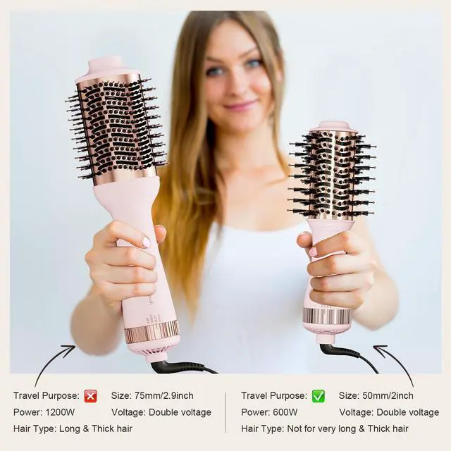 • COMPACT TRAVEL ESSENTIAL 0.88lb weight, smaller and lighter than other BULKY hair brush blow dryer. Dual Voltage HAIR TRENDS 2inch oval brush blow dryer is easier to store and pack for a happy Travel or in a Gym bag.