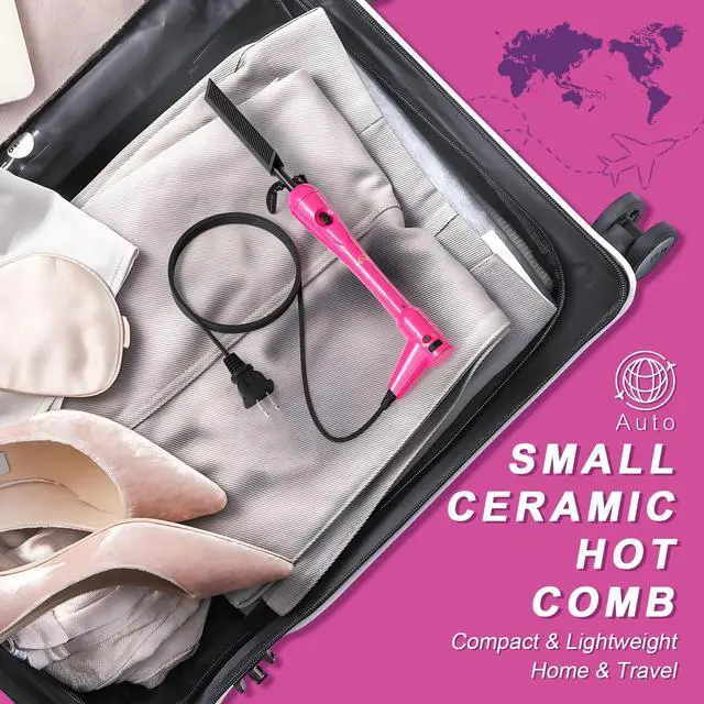 LIGHTWEIGHT & COMPACT0.6LB, 11.8*3*2in. Mini small hot comb for home, traveling/touch ups, very portable size and super light weight, easy to hold.