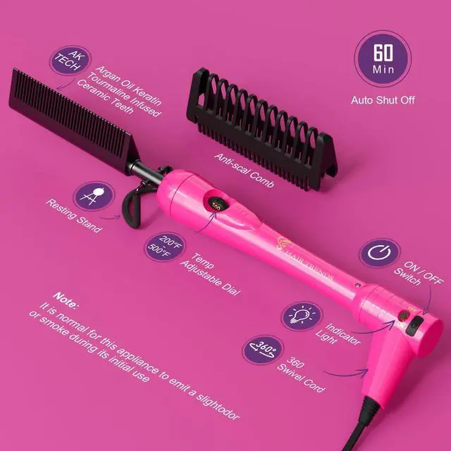 500 DEGREE HOT COMB7 heat setting, range from . Provide precise temperature control for all hair types. Hair Trends hot comb constructed of ceramic metal, which transmits heat in 30 seconds, quickly bring you the soft & bouncy salon-quality hair.