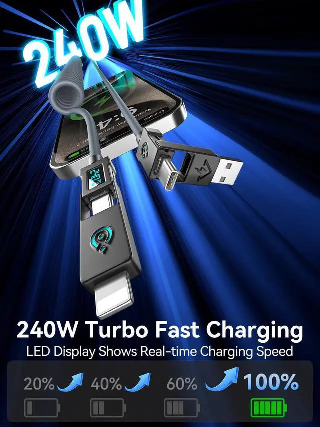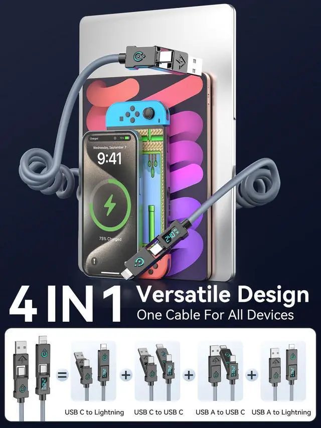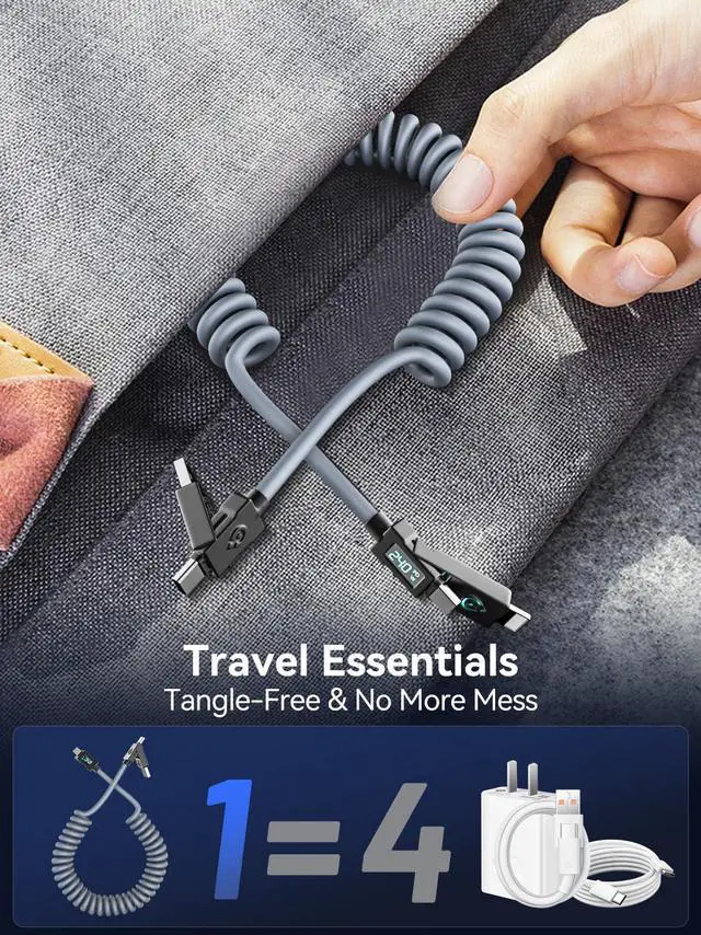 | Special Feature | 240W USB C Fast Charging, CarPlay & Android Auto Support, Coiled Design for Cars, USB 2.0 Data Sync 480Mbps, Universal 4-in-1 Design |