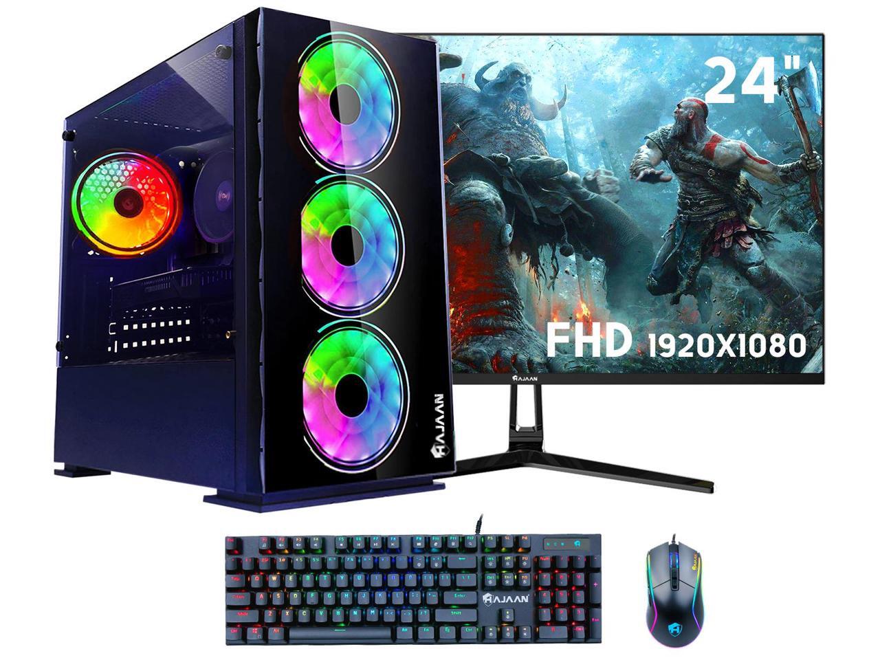 HAJAAN Gaming PC Desktop Tower - AMD Ryzen 7 5700X, GTX 1660 Super 6GB GDDR6, 32GB DDR4 RAM, 1TB NVMe M.2 SSD, 24" Inch Curve Gaming Monitor, Windows 11 Pro, WiFi - New