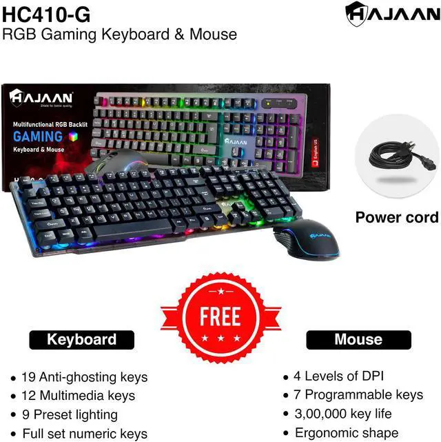 • Free HAJAAN RGB Wired Gaming Keyboard and Mouse