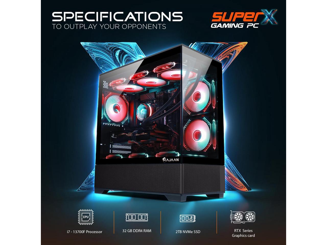 HAJAAN SuperX Gaming PC Liquid Cooled - Intel i7 13700F - GeForce RTX 4060 8GB - 32GB DDR4 - 2TB NVMe SSD - Windows 11 Pro - WiFi - Bluetooth - Mechanical Keyboard Mouse