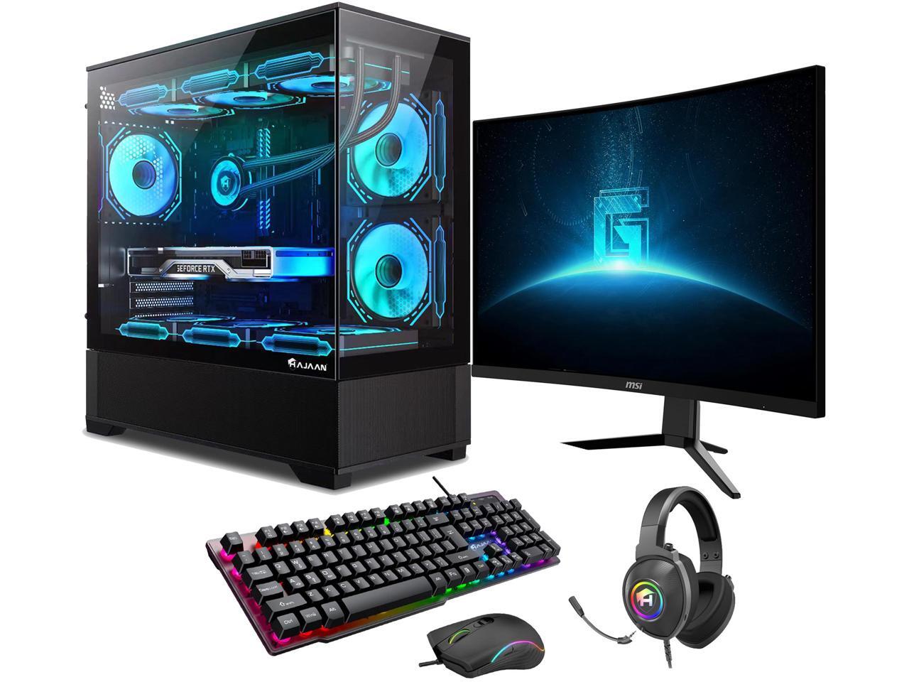 HAJAAN Gaming PC Tower Desktop - MSI 27" Curved Gaming Monitor, 180Hz - RTX 4060 Ti 8GB - Intel Core i9-12900K - 32GB DDR4 RAM - 1TB NVMe SSD - Wifi 6 - Bluetooth - Windows 11 Pro