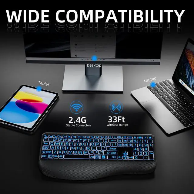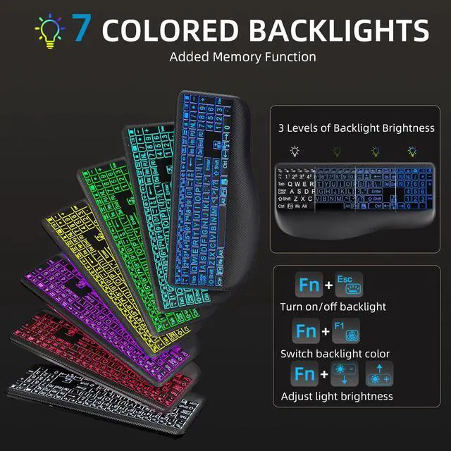 LARGE PRINT KEYS FOR EASY READING - Designed to be a full-size wireless keyboard with oversized high-contrast letters(16.54 x 8.01 x 0.94 inches), our large print backlit keyboard ensures effortless typing with clear, easy-to-read keys, effectively helping reduce typosNo mouse included