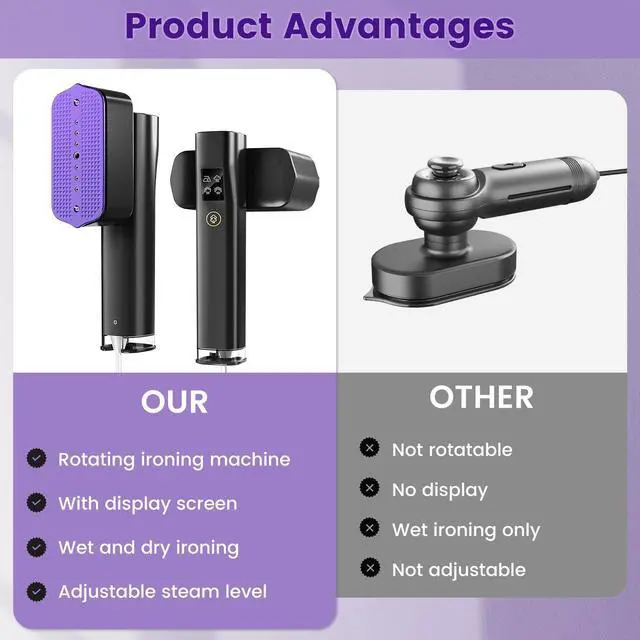 Electric Stovetop Compatible, Quickly removes wrinkles, Portable and convenient for travel, Intelligent temperature control for fabric protection, Easy and safe to use