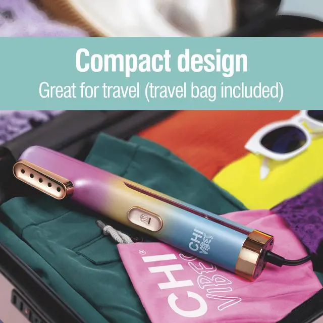 Slay the day at home or on-the-go. The CHI VIBES Compact Garment Steamer is lightweight and easily fits in a suitcase, so you can bring it anywhere without sacrificing your style. Includes travel bag.