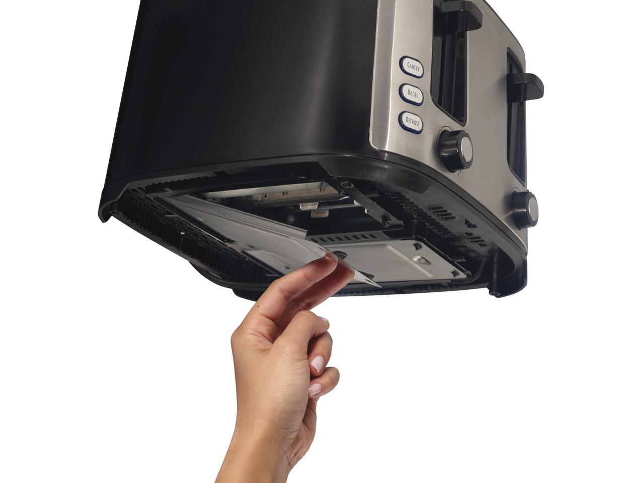 - EASY CLEANUP: The two drop-down crumb tray catches crumbs to keep them off your countertop. Just release each tray to discard crumbs.