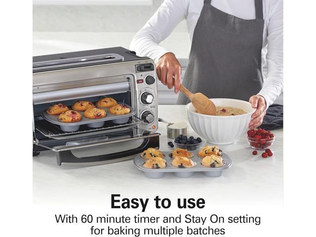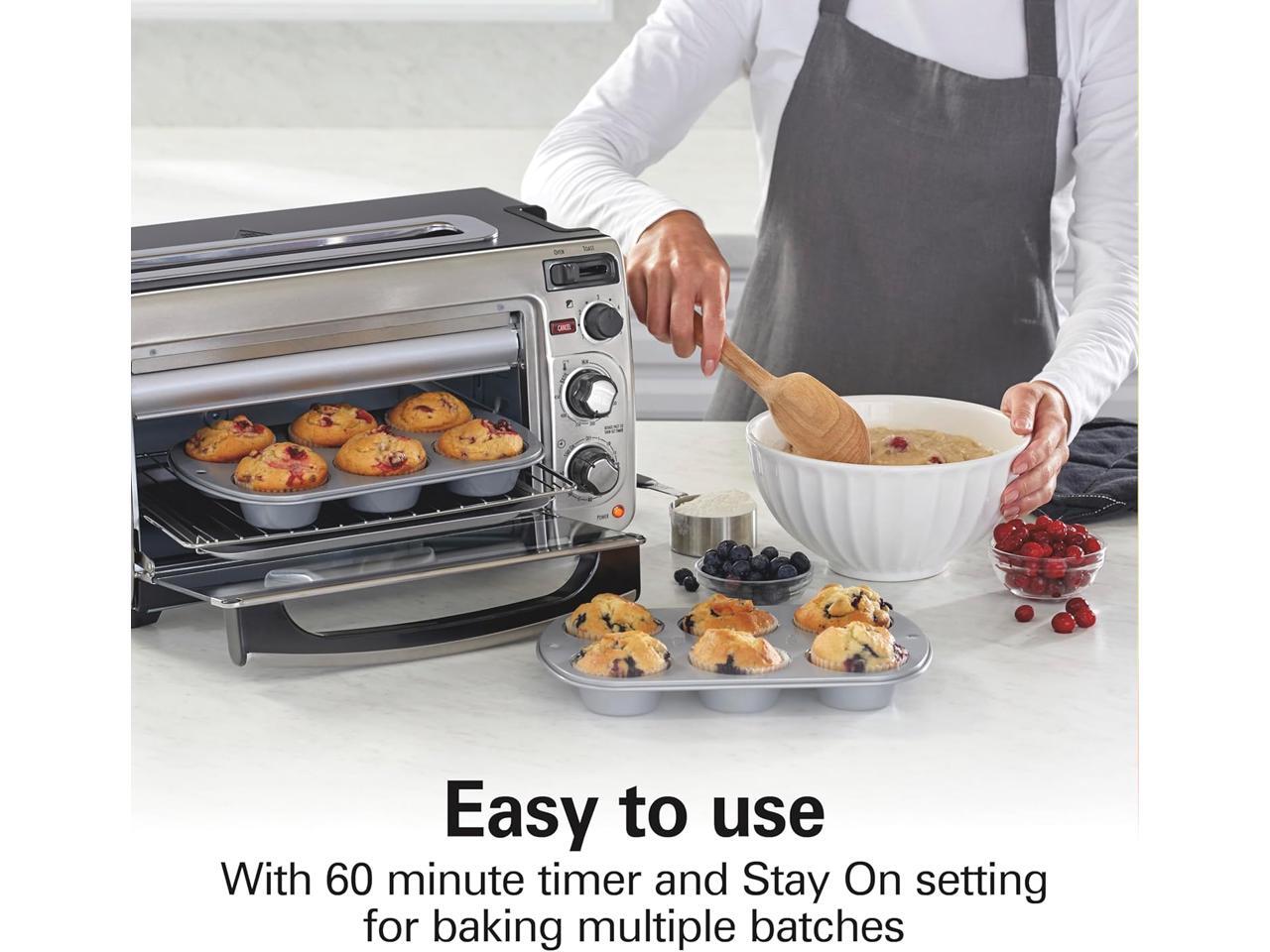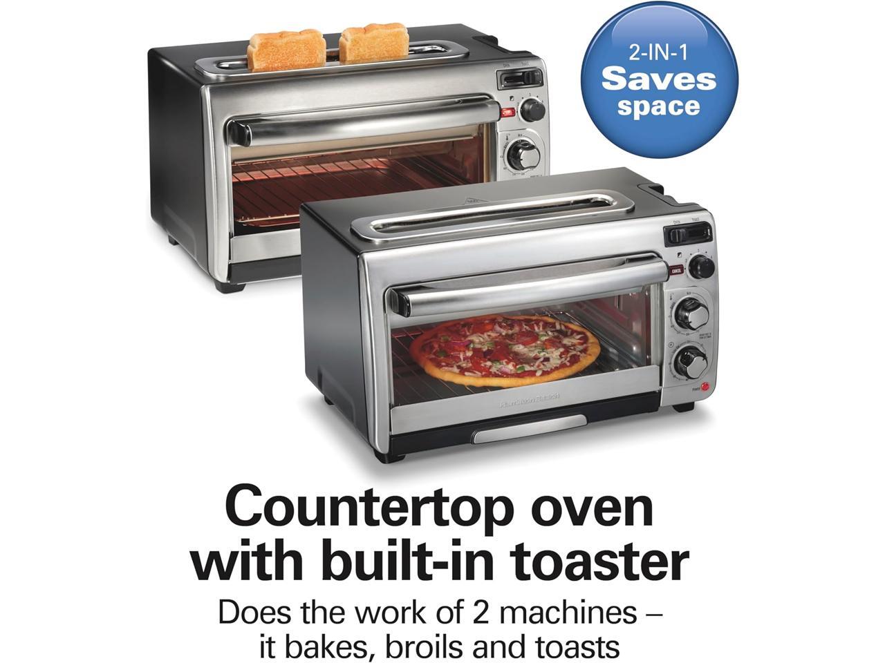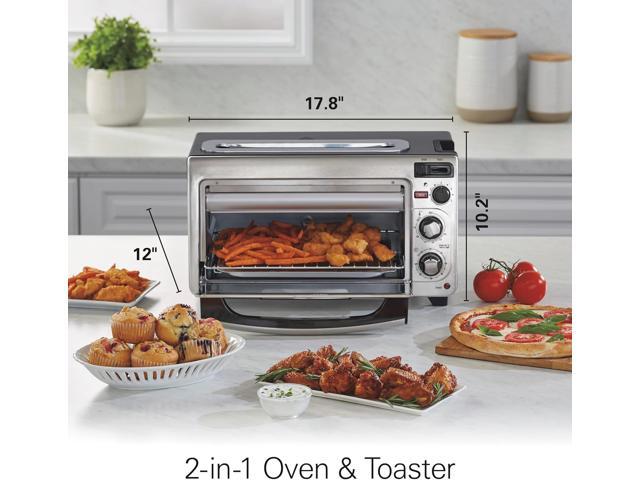 Hamilton Beach 2-in-1 Countertop Toaster Oven and Long Slot 2 Slice Toaster, 60 Minute Timer and Automatic Shut Off, Shade Selector, Stainless Steel (31156)