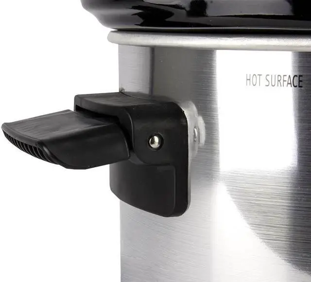 - Detachable lid and removable stoneware for dishwasher clean upHinged lid stays up for serving