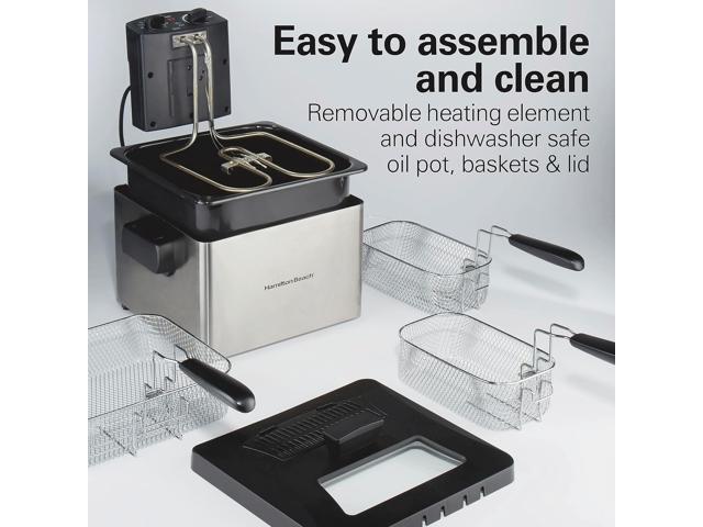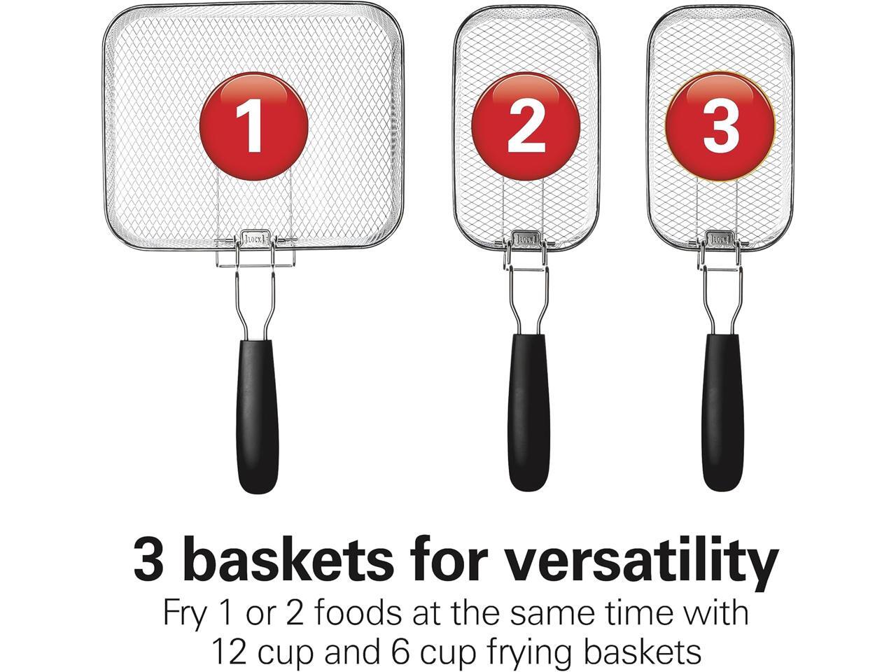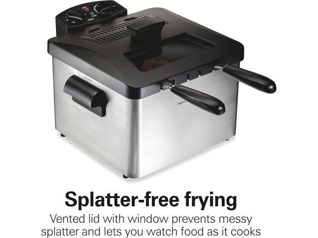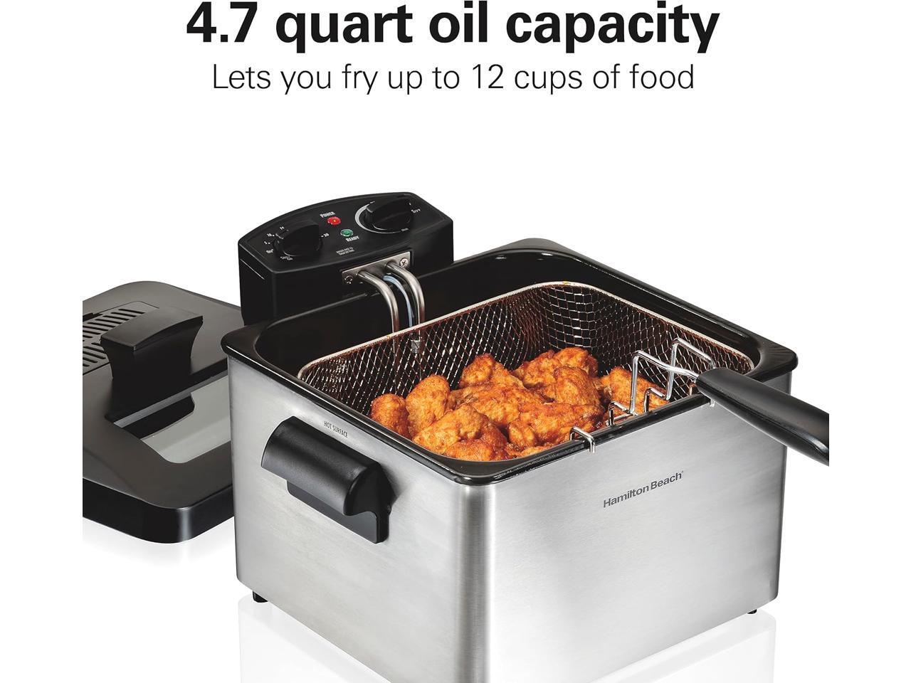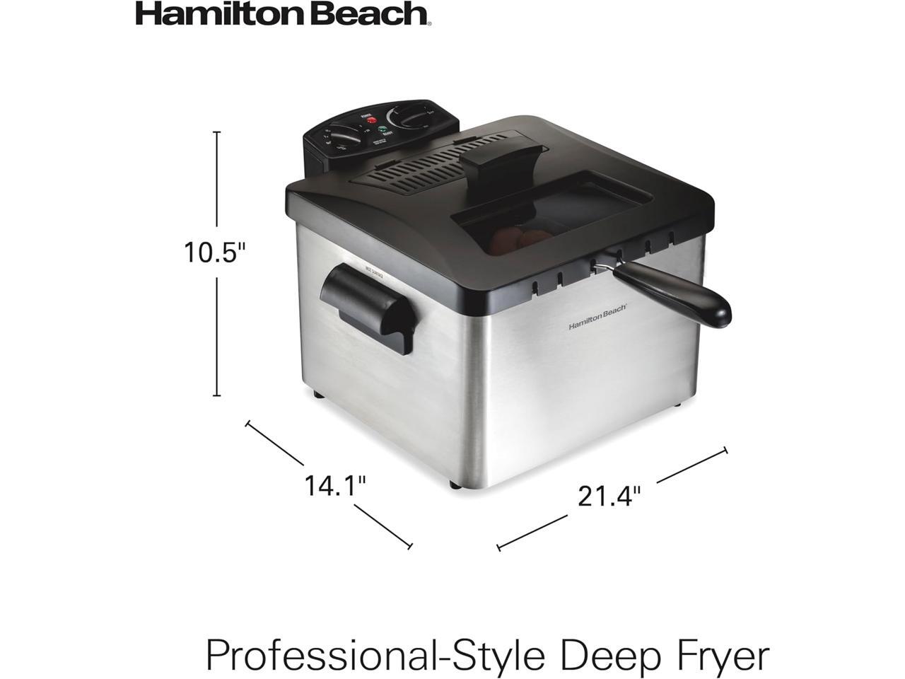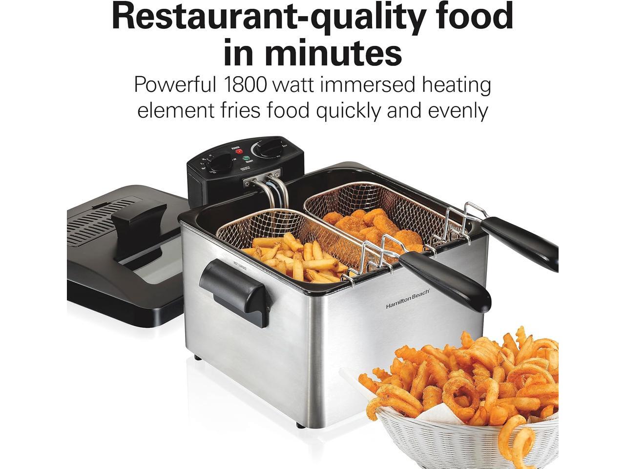 Hamilton Beach Electric Deep Fryer with 3 Baskets and Lid, 4.5 Liters / 19 Cups Oil Capacity, Temperature Control, View Window, Professional Style, 1800 Watts, Stainless Steel (35034)