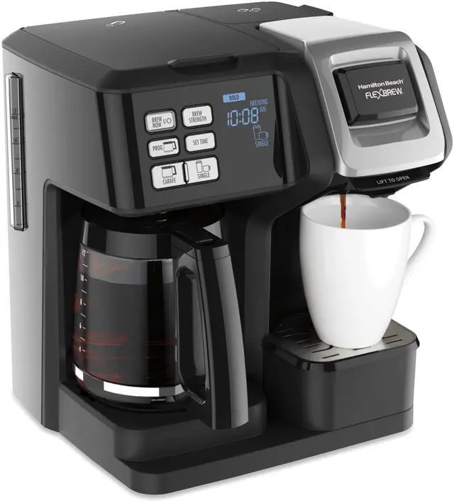 The flexible design of the Hamilton Beach FlexBrew Trio Coffee Maker lets you brew coffee three different ways.