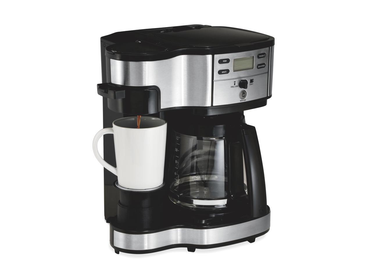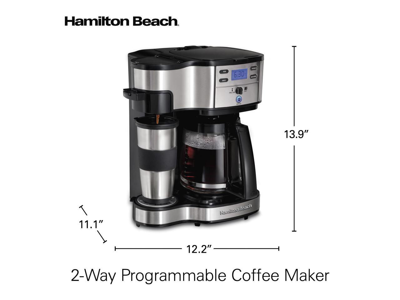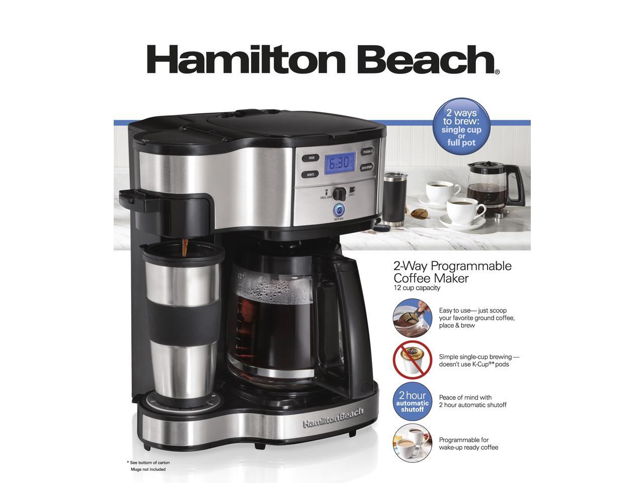 - 2 WAYS TO BREW: SINGLE CUP OR FULL POT. Brew a single-serve cup or a full pot of coffee with your favorite ground coffee. Whichever way you brew, the Hamilton Beach Programmable Coffee Maker makes it easy to do both. Not compatible with K-Cup®* pods.