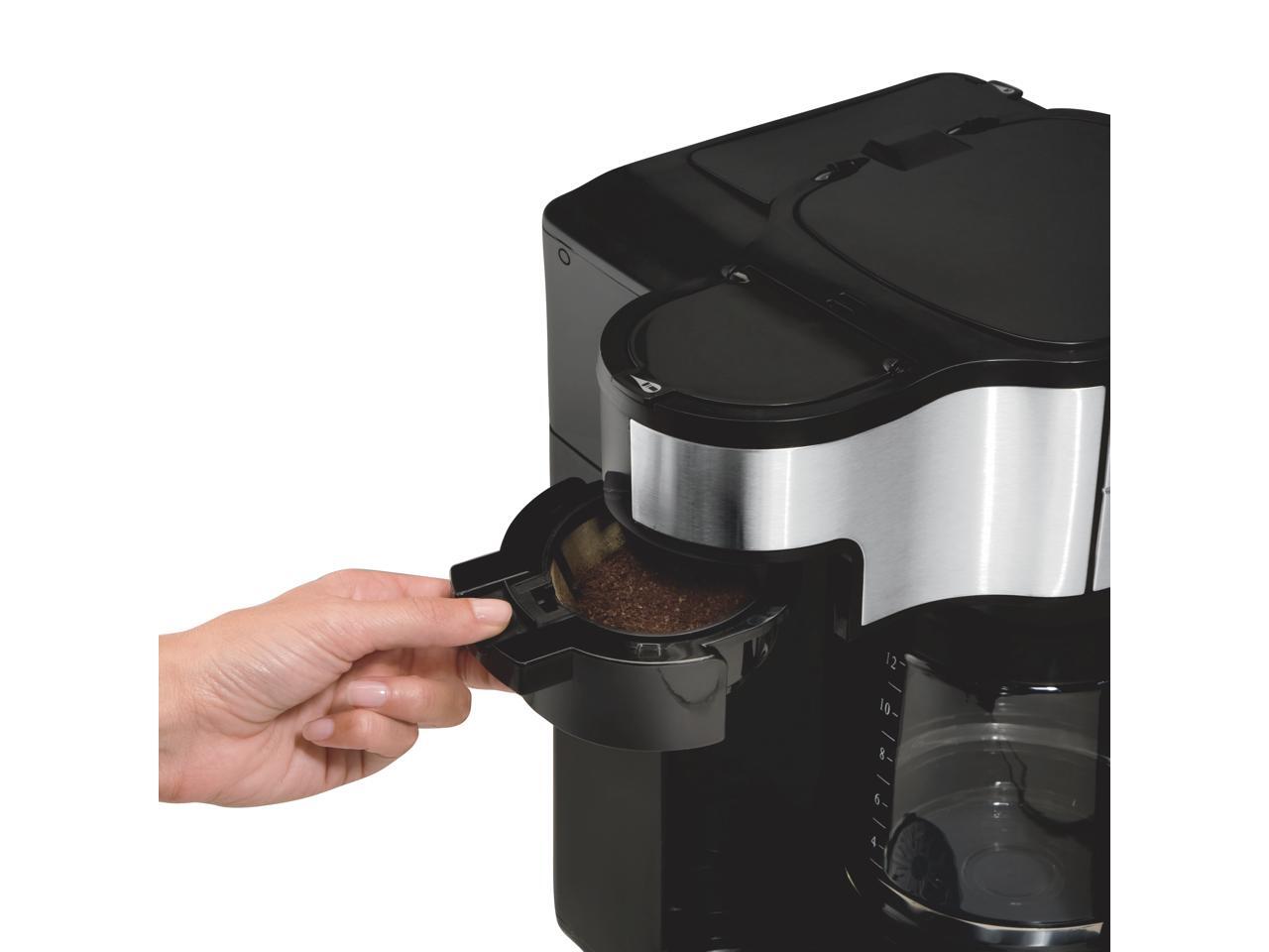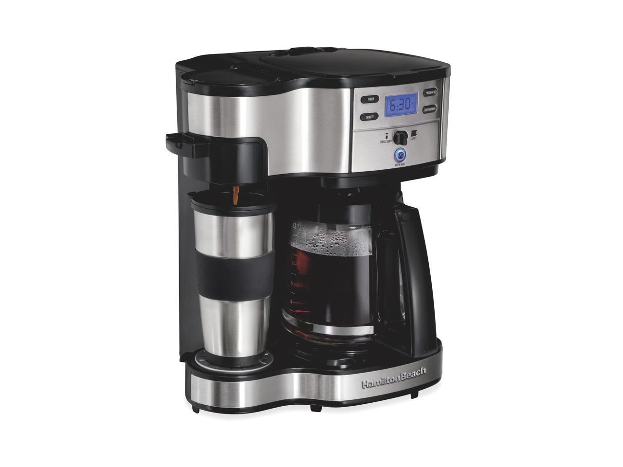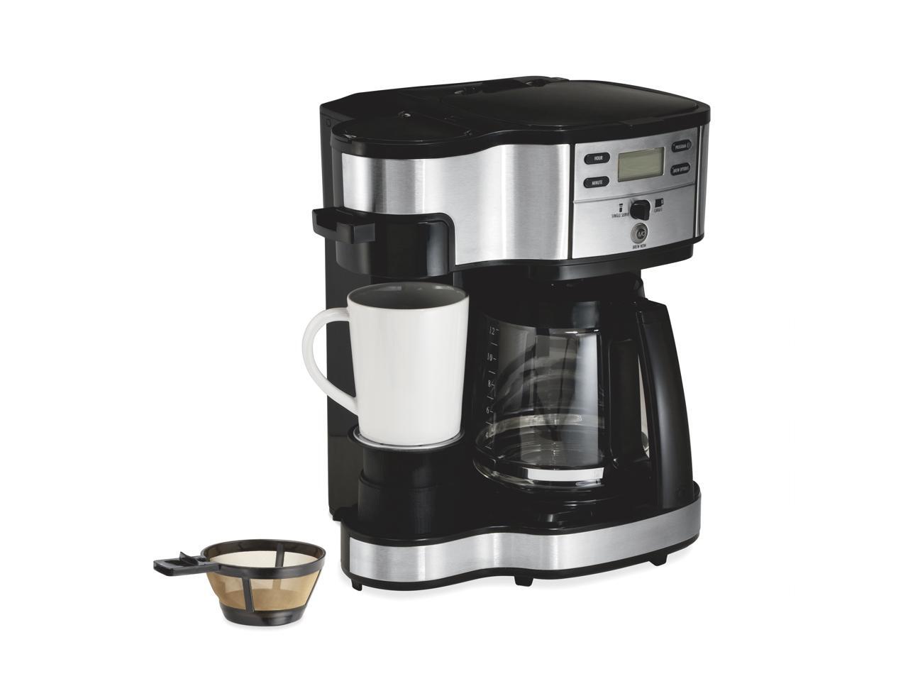 - 2 WAYS TO BREW: SINGLE CUP OR FULL POT. Brew a single-serve cup or a full pot of coffee with your favorite ground coffee. Whichever way you brew, the Hamilton Beach Programmable Coffee Maker makes it easy to do both. Not compatible with K-Cup®* pods.
