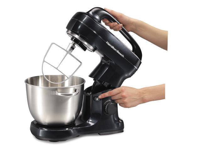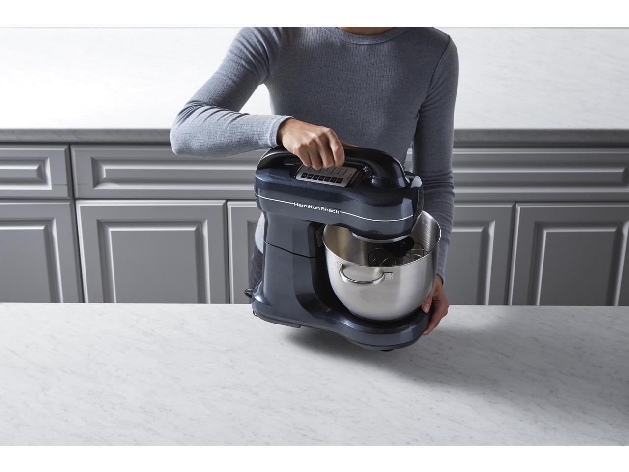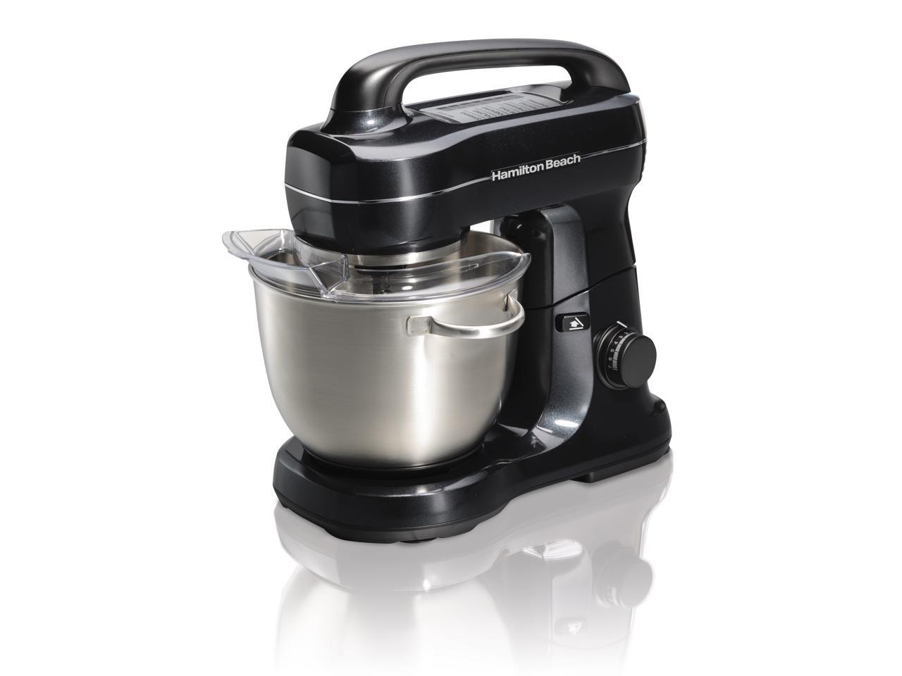 - Effortlessly mix thick batters and doughs for bread, cookies and more. With a powerful 300 watt motor, this Hamilton Beach stand mixer will easily handle the ingredients for all your homemade baked goods from cupcakes and cookies to bread.
